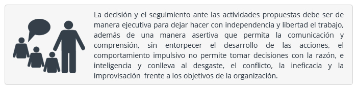 La comunicación entre los equipos de trabajo en la organización responde a la manera y habilidad de asignar las actividades y responsabilidades reflejadas en el estilo de gerencia, el saber cómo delegar permite obtener resultados efectivos porque motivan a los participantes hacia la productividad, el poder de tomar de decisiones se realiza de manera autónoma para investigar cuales son las causas de un problema, manejar la información primaria y secundaria para comprender las razones y proponer diferentes alternativas.