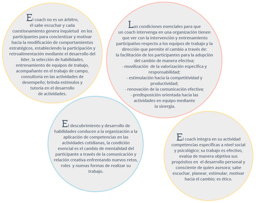 El enfoque que se sugiere que tenga el coach es el de cambio y la actitud frente a la nueva orientación que debe dar a la organización a través de la identidad en su estilo, esto le permite enfrentar las crisis frente a la resistencia de su equipo y frente a las innovaciones requeridas de acuerdo a la dirección convencional.