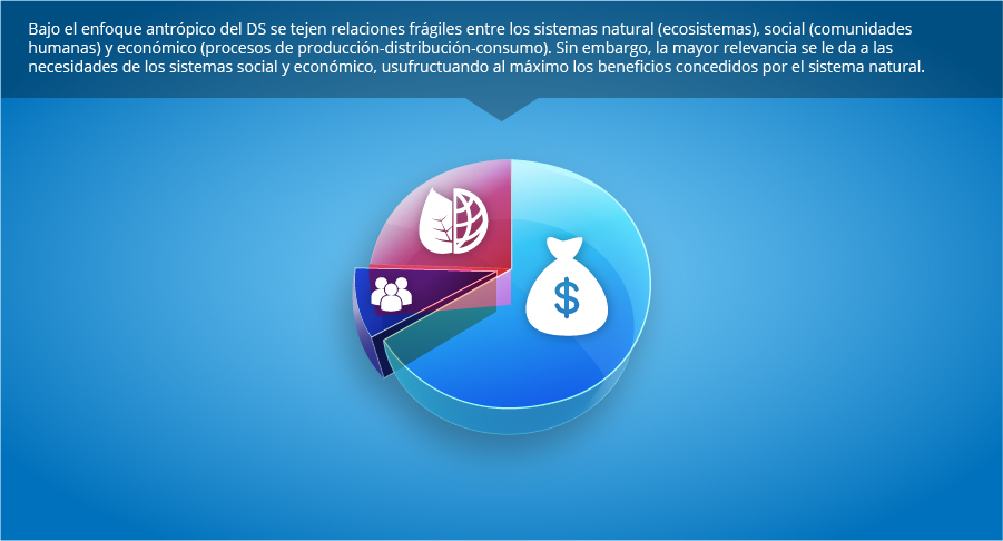Bajo este tipo de ‘sostenibilidad débil’ (Pérez, 2012), el medio ambiente se encuentra subordinado al utilitarismo y a los intereses económicos. Luego, es una visión que a largo plazo es insostenible debido a que la naturaleza tiene límites (fronteras ecológicas), que suelen ser subvertidos por las crecientes necesidades (básicas o suntuarias) y niveles de consumo-desecho, generados por las sociedades modernas.